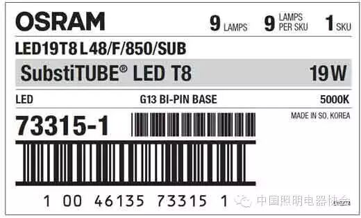 此次被召回的产品名称是SubstiTUBE T8 LED灯管,产品长48英寸(1.22米),直径1英寸(2.54厘米),贴在灯管末端的银色标签印有“OSRAM SubtiTUBE® ISLED T8”的字样,型号为73312-1或73315-1,标签申明上方印有“与T8电子镇流器兼容”。